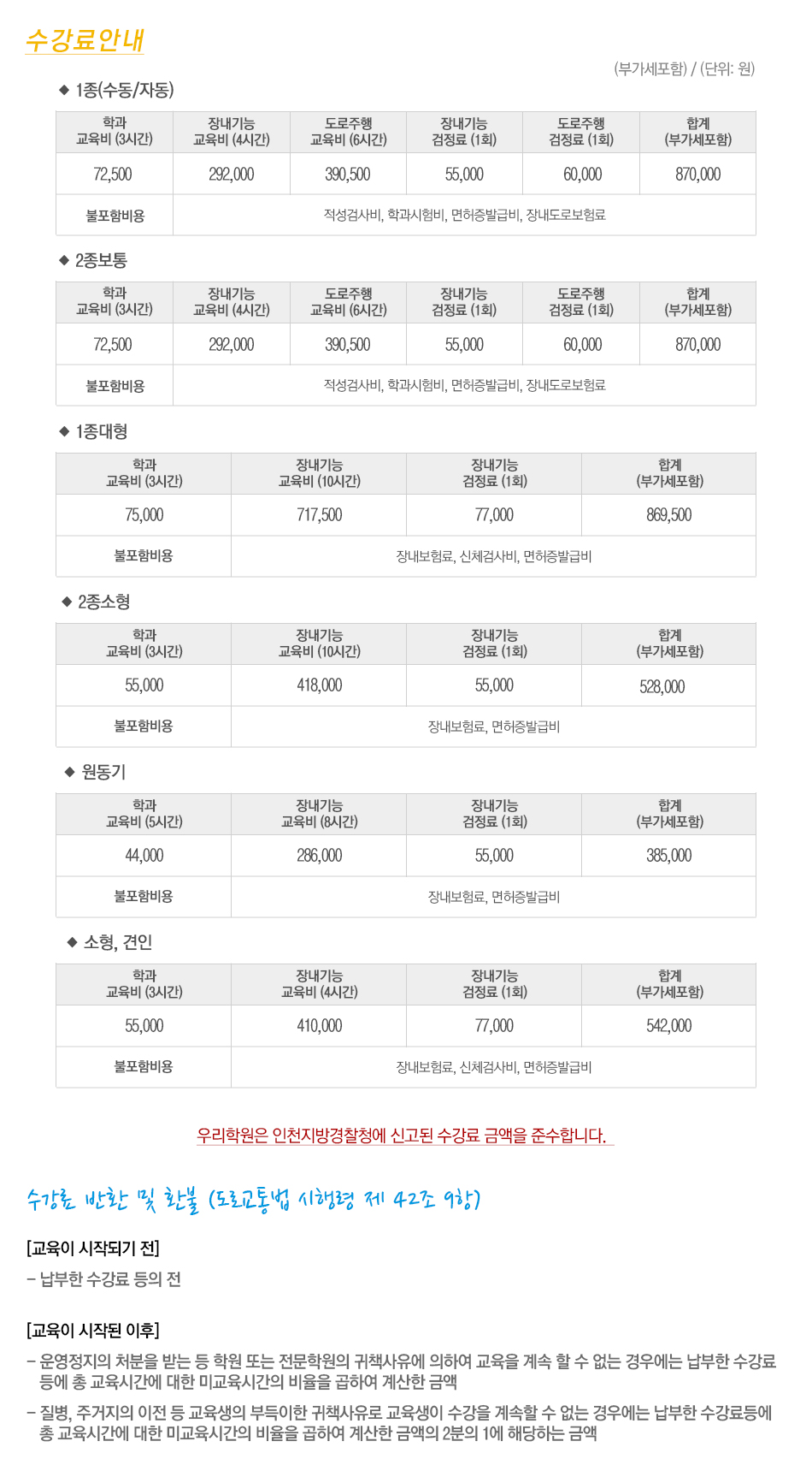 수강료안내