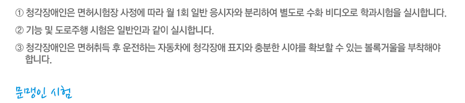 시험은 월1회 일반 응시자와 분리하여 실시하고, 응시방법은 시험관이 문제를 직접 읽고 문맹인이 그 내용을 듣고서 답안을 기재 |